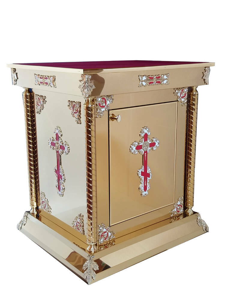 Майстерня «Фавор» виготовляє та реалізує жертовники для храмів різних форм, розмірів та стилів. У нашому магазині ви можете підібрати жертовник з колонами, карбуванням, литими елементами, кіотом, куполами, іконою. Для облаштування нової церкви рекомендуємо купувати одночасно і церковні престоли, виготовлені та оформлені подібним чином.