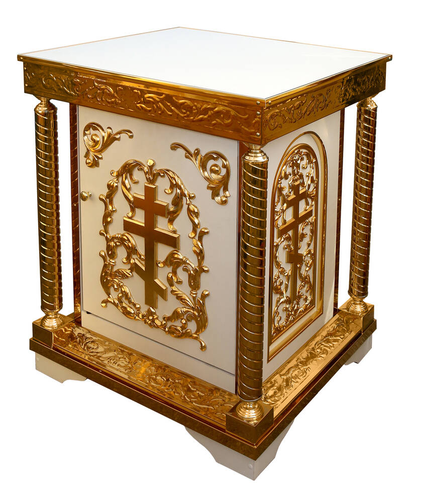 Майстерня «Фавор» виготовляє та реалізує жертовники для храмів різних форм, розмірів та стилів. У нашому магазині ви можете підібрати жертовник з колонами, карбуванням, литими елементами, кіотом, куполами, іконою.
