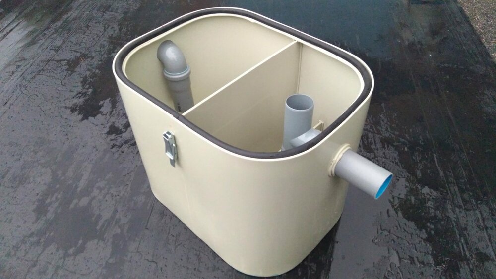 Жироуловители оснащают сифоном для удерживания жирных веществ в устройстве. Жиры, которые поступают вместе со сточными водами, сначала направляются в дефлектор, встроенный в сепаратор, который снижает скорость потока и равномерное распределение потока.
