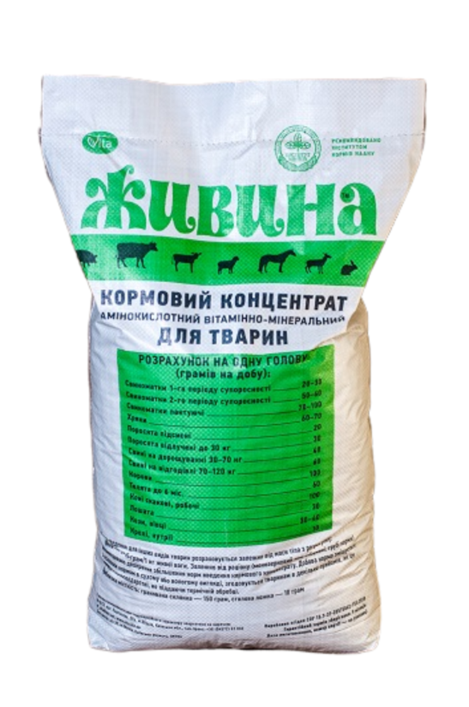 ЖИВИНА™- натуральний продукт, виготовлений з меляси, кукурудзяного екстракту, кормових дріжджів шляхом мікробіологічного синтезу з використанням спеціальних бактерій. У результаті життєдіяльності цих бактерій у розчині вищезгаданих компонентів утворюється величезна кількість лізина, а також значна кількість інших амінокислот і вітамінів. Висушуванням цієї суміші з пшеничними висівками дає продукт під торговою назвою ЖИВИНА™.