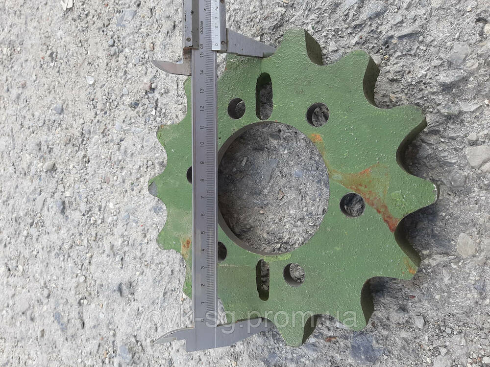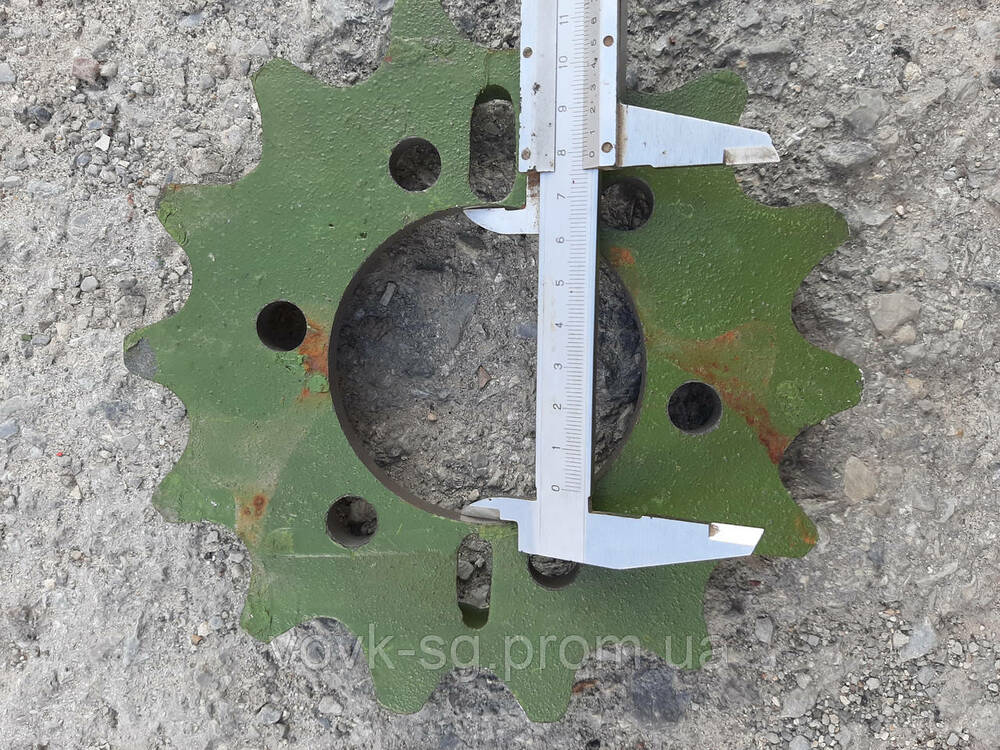 Запасна частина на польську дворядну картоплекопалку Agromet Z609. Ведуча зірочка транспортера на 14 зубів, складається з двох частин (ділиться навпіл) і має 6 отворів для кріплення на маточину.
