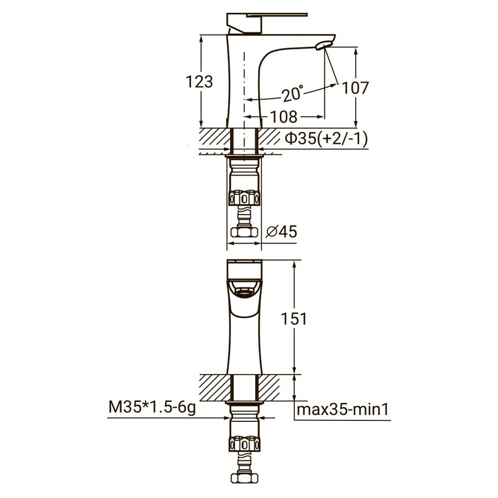Змішувач HT Ø35 для раковини литий на гайці SS AQUATICA (HT-1A171P)