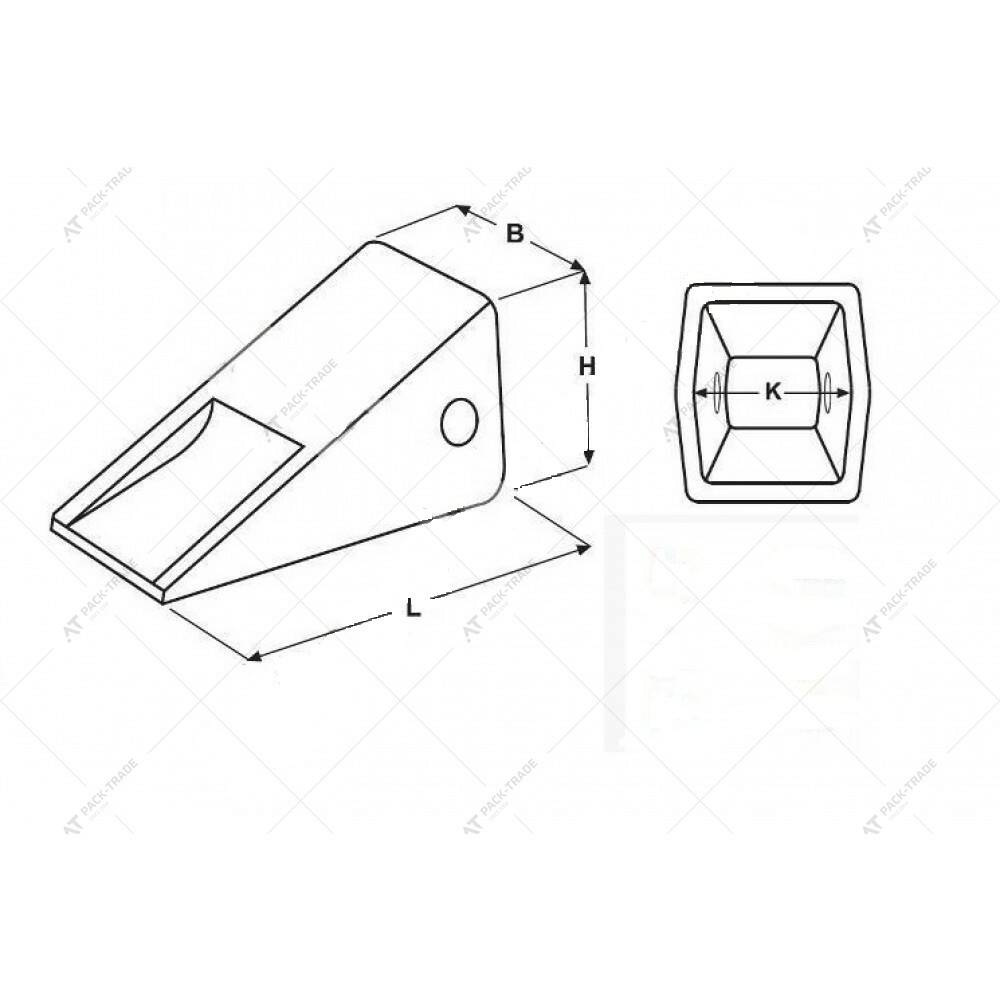 Зуб ківша скельний. Міцний зуб, ідеально підходить для тяжких умов експлуатації, аброзивні матеріали, каміння, глина, глинозем, мерзлота. Застосовується на екскаваторах і фронтальних погрузчиках масою від 27 до 30 тон.
