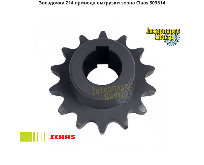 Зірочка приводу шнека вивантаження зерна комбайнів Claas Mega, Medion, Dominator, Commandor. Кількість зубів – 14 (Z14, T14), діаметр внутрішній – 30 мм., висота – 38 мм.