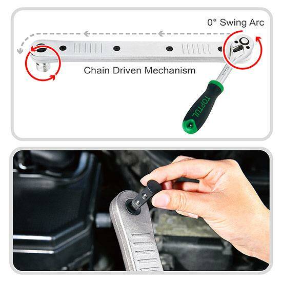 Механизм с нулевым углом колебания: Позволяет свободно использовать трещотку на расстоянии от горячих поверхностей и в тесных пространствах