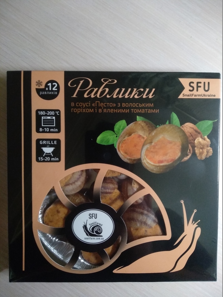 Состав: приготовленное(вареное) мясо улиток (виноградная улитка), сливочное масло,томаты вяленые, ядра грецких орехов, оливковое масло, чеснок свежий, соль поваренная пищевая, базилик, перец черный.
