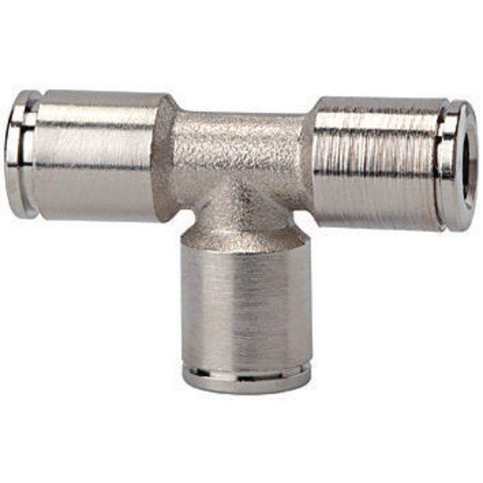 Push-in fittings, manufactured entirely in nickel-plated brass. All parts with a parallel thread are supplied with an FPM O-ring.<br>All parts with conical threads are coated with preCOTE 5 dispersion, all fittings in this series can thus also be used at high temperatures (medium compressed air).