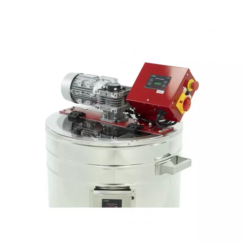 Особенностью данной модели являются интегрированные нагревательные элементы, которые позволяют выполнять декристаллизацию меда. Оператор может устанавливать температуру в диапазоне 30–55 °C, а продуманное расположение нагревателей обеспечивает равномерное прогревание всего бака.