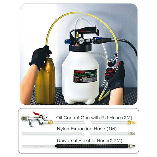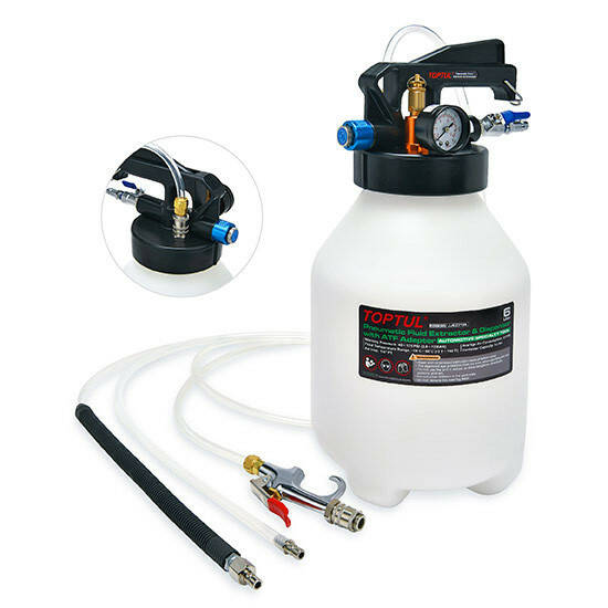 Профессиональное пневматическое устройство TOPTUL JJEZ0106E предназначено для быстрой, безопасной и чистой замены трансмиссионной смазки без необходимости демонтажа агрегатов.