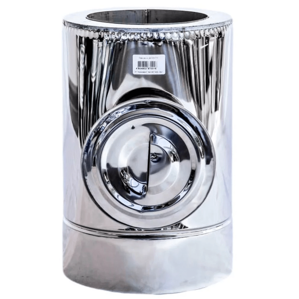 Ревизия из нержавеющей стали Ø120/180 мм — важный элемент сэндвич-дымохода, предназначенный для обеспечения удобного доступа к внутренней части трубы с целью ее очистки от сажи и технического обслуживания. Конструктивно ревизия представляет собой отрезок утепленной трубы с боковым люком, оснащенным плотной заглушкой, легко снимается при необходимости.