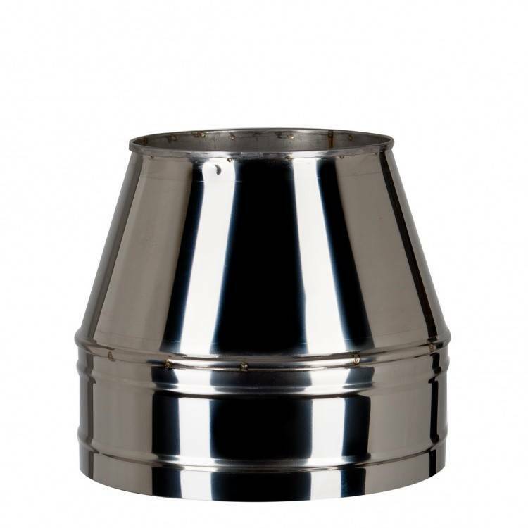 Конус изготовлен из высококачественной нержавеющей стали AISI 304 толщиной 0,5 мм и имеет слой теплоизоляции. Его использование способствует герметичности соединения и предотвращает образование конденсата и засорение дымохода.