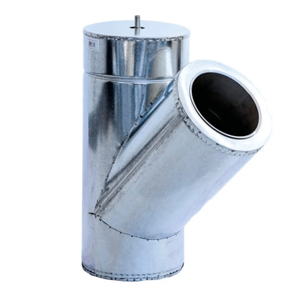 Для поддержания стабильной тяги и безопасной работы дымохода необходима регулярная очистка от сажи. Чтобы обеспечить доступ к внутренней части дымохода, под тройником обычно монтируется ревизионный элемент. Именно тройник с углом 45° позволяет эффективно интегрировать ревизию в вертикальный участок системы.