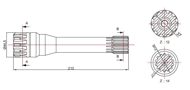Вал отбора мощности (ВОМ) ZF 16 S 151-221 (213 мм)