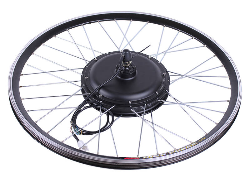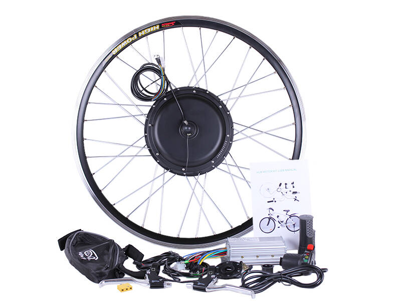 Элементы набора готовы к монтажу. Устанавливаются легко и без проблем с посадочными местами и трещотками. Собранное и заспицованное колесо с электродвигателем 48v 350w, ставится на переднюю или заднюю ось велосипеда (в зависимости от комплекта). Крепкий обод с усиленными спицами защищает мотор от деформации, вынослив и стойкий к нагрузкам.