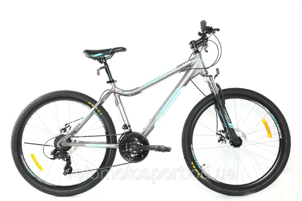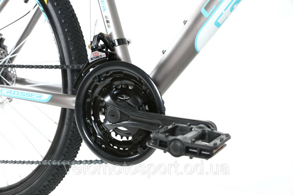 Велосипед Crosser TRINITY 26 - НОВИНКА - прекрасный женский велосипед, подойдет для катания по пересеченной местности, бездорожью средней сложности, а так же для езды по городским дорогам. Crosser Trinity оборудован дисковыми тормозами, которые не забиваются грязью и не увеличивают тормозной путь в непогоду. Горный велосипед Crosser Trinity оснащен переключателями скоростей Shimano и двойным ободом колес, что делает транспортное средство более прочным и устойчивым от повреждений во время езды по неровностям.Характеристики :