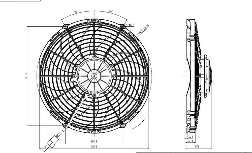 Вентилятор кондиціонера універсальний 12 дюймів 12V Всмоктуючий 120 W