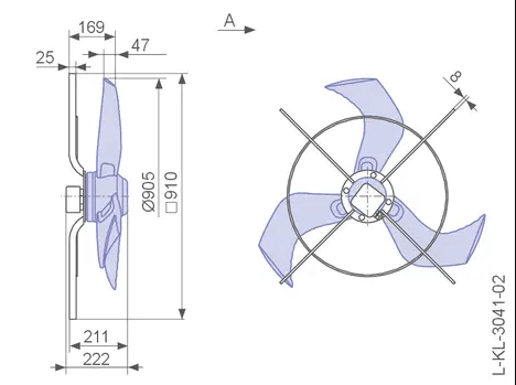 Вентилятор для шахты, модель FF091-6ET.6F.A3P2, ø 91 см, 1 фаза.