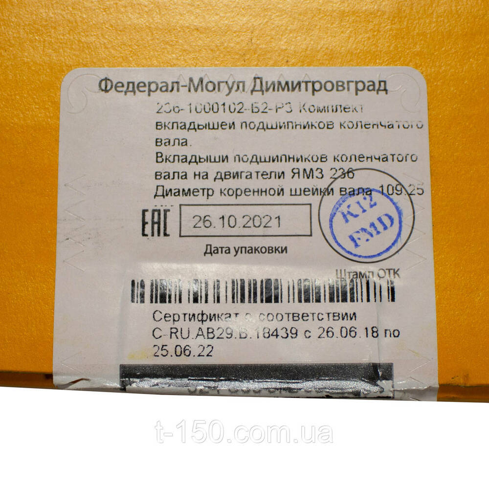 | 10 | 236-1000102-Б2-Р3 | Вкладыши коренных подшипников 109,75 мм (комплект) |