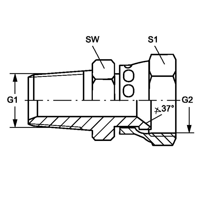 | GE HN 08 AJ 12 | 1/2" -14 NPT | 1.1/16" -12 UN | 27 | 32 |