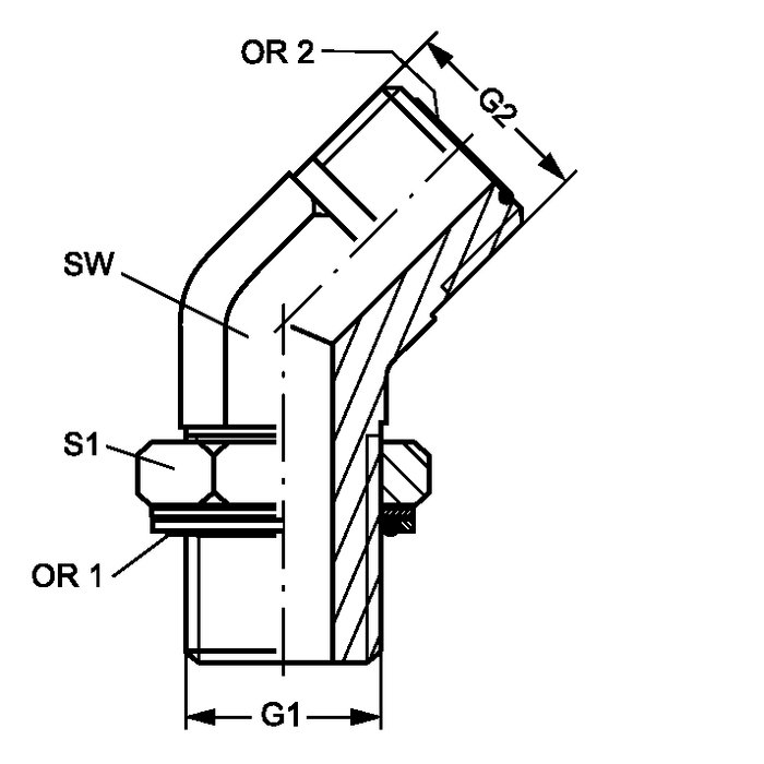 Ввертный штуцер, угол 45° - W45 HROK HJOF
