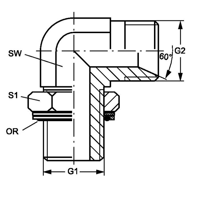 | W90 HROK 12 HB 08 | G 3/4" -14 | G 1/2" -14 | 27 | 35 | 23.47 x 2.62 |