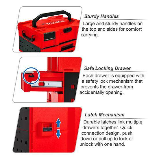 Модульная конструкция: крепкие замки для соединения нескольких ящиков и расширения системы хранения.
