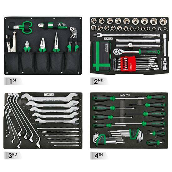 Этот набор обеспечивает широкий спектр инструментов для различных задач, от базовых ремонтных работ до профессионального обслуживания. Благодаря продуманной организации и высококачественным материалам, TOPTUL GCZ-134A станет надежным помощником в вашей работе.