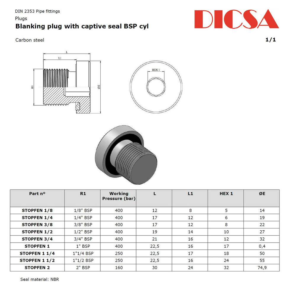 Заглушка 1/4" - 19 BSP AGRF (ED в порт) DICSA, Испания