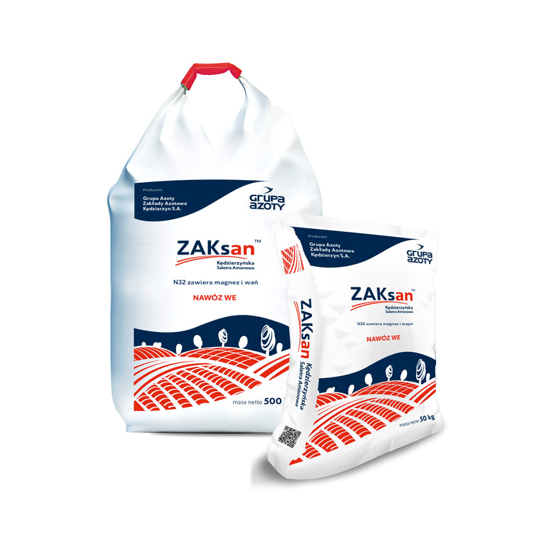 Zaksan содержит в тех же количествах более медленный азот в форме аммония и быстродействующий нитратный азот. Аммонийный азот не выщелачивается из почвы, его медленно поглощают растения, он влияет на хорошее укоренение растений, он поддерживает поглощение фосфора и ограничивает чрезмерное поглощение калия. Содержание быстродействующей нитратной формы азота ускоряет рост растений вскоре после внесения удобрения, т. е. Весной оно ускоряет регенерацию растений после зимнего ослабевания и в течение вегетационного периода, применяемого до того, как фазы наивысшего спроса растений приведут к их надлежащему росту. Содержание этих двух форм - saletrzanej аммония и равные количества Zaksan® (Kędzierzyńska нитрата аммония) в наших климатических и почвенных условиях, это является наиболее универсальным и эффективным азотное удобрение.