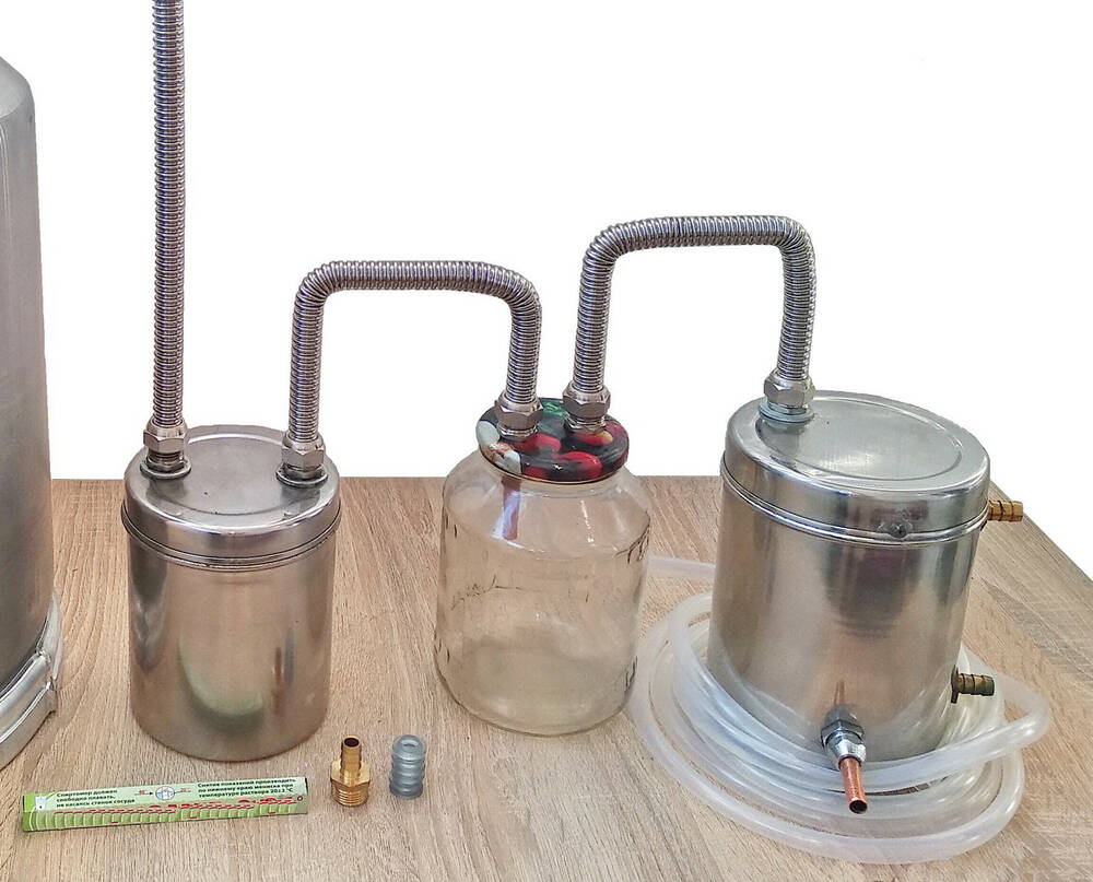 На фото представлены, лишь несколько вариантов комплектации дистилляторов. Благодаря единому стандарту 1/2 дюйма Вы можете подобрать свой индивидуальный комплект.