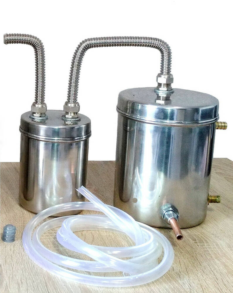 Дистилляторы ручной работы изготовлены из нержавеющей стали и меди, что избавляет от посторонних запахов.
